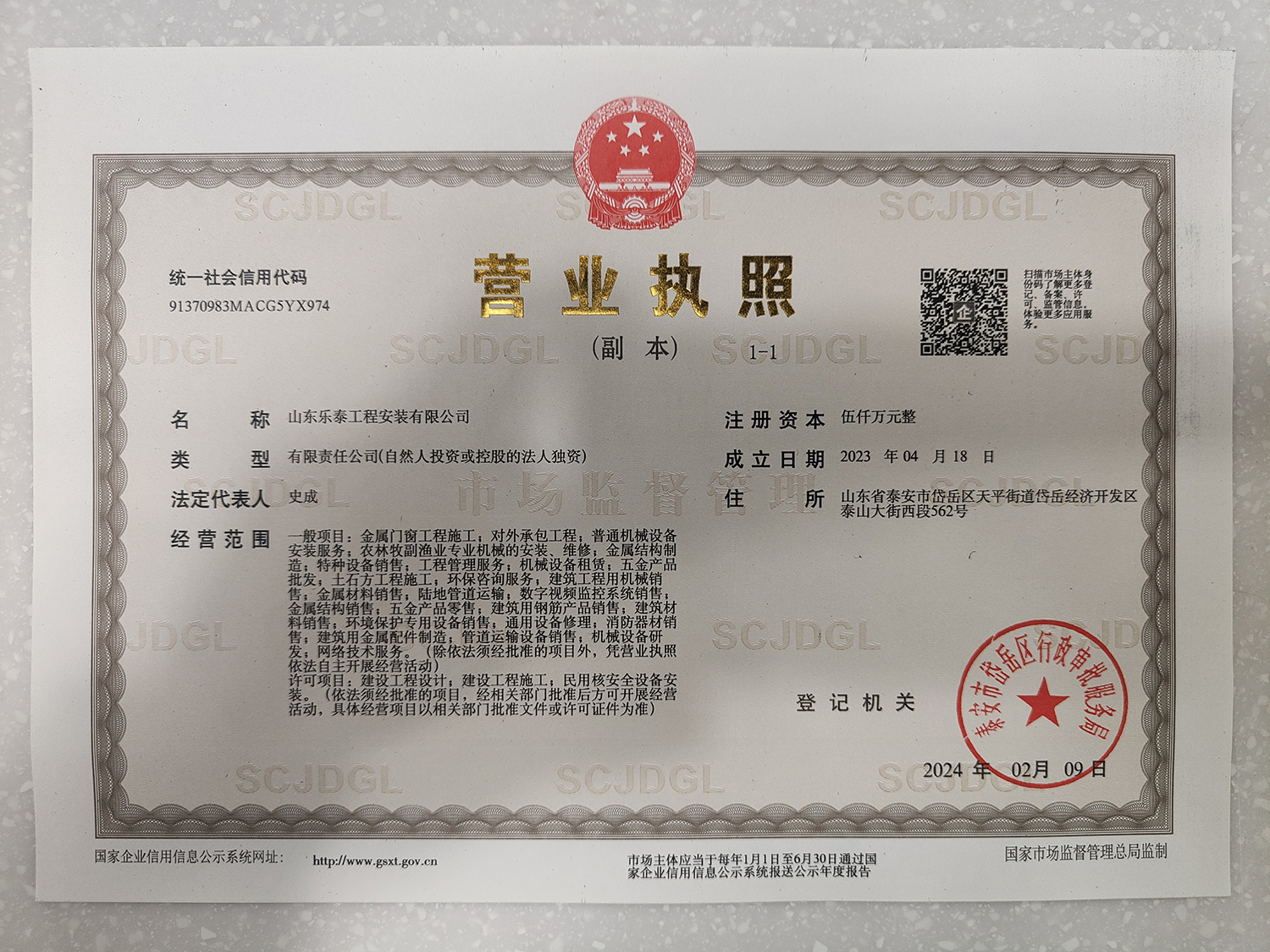 營業執(zhí)照(副本)